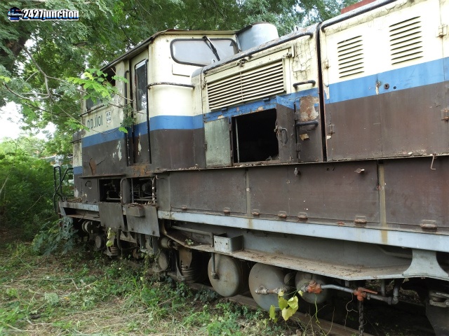 Between 2003 and 2008 Myanma Railways had received six used cape gauge diesel locomotives from Japan Railways of exotic type B'2'B'-dh and 2,900hp power (JR class DD 51) most probably as part of development funds. As the locomotives require a re-gauging and as they are too large and powerful for proper use on Myanmar railway lines, Myanma Railways didn’t really know what to do with the engines. The status of the first two locomotives delivered is unknown, two others were cut into halves (see class DD.1101) and the latter two are awaiting re-powering after conversion to metre gauge in Insein workshop.